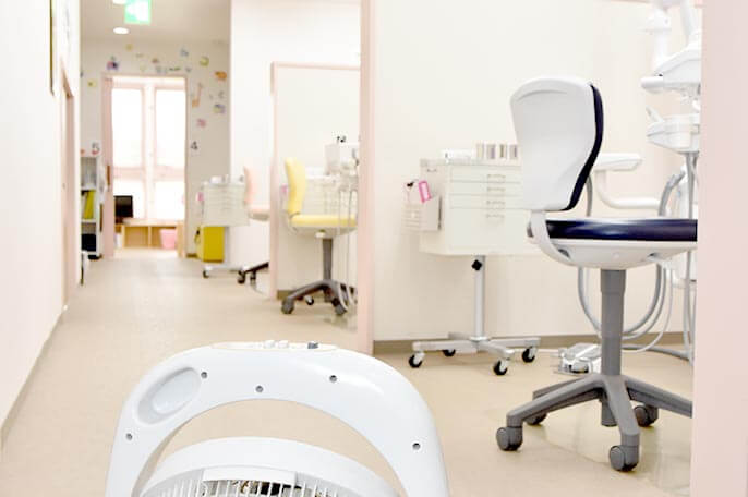 密閉を回避するため、窓の開放と換気扇の使用により、院内の換気を徹底しています。