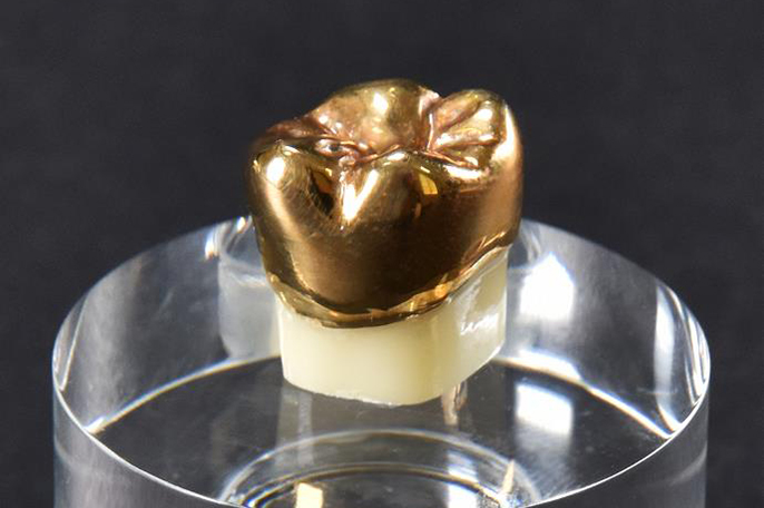 生体親和性に優れた素材のため、アレルギーの方にも最適な素材です。審美性には優れないため、奥歯に使用するケースが一般的です。