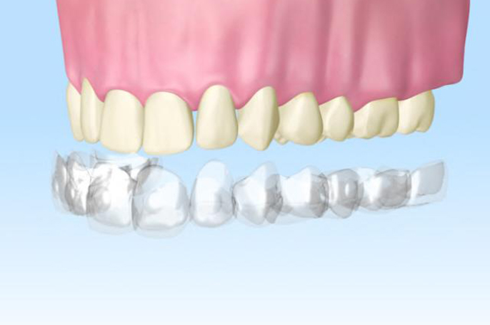 上下の歯の型を採り、ご自宅で使用できる専用のマウスピースを作成します。ご自宅では、ホワイトニングジェルを入れたマウスピースを、1日2時間程度装着します。オフィスホワイトニングで白くなった歯の効果を持続させることができます。