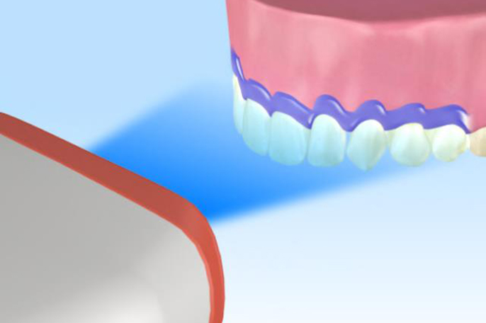 歯科医院で行うホワイトニングです。ホワイトニング材を歯に塗り、特殊な光を照射します。即効性があるため、施術終了後すぐに歯の白さを実感できます。色戻りがしやすい点をホームホワイトニングでカバーしていきます。