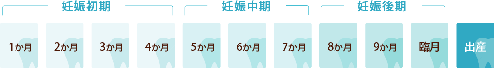 妊娠期は体調に合わせて、初期から後期まで計画的に治療を行っていきましょう。